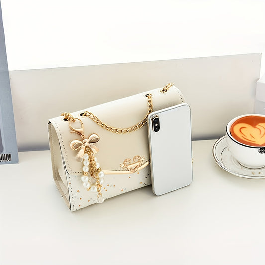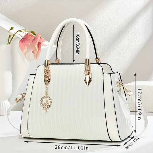 Elegant Wo's ձեռքի պայուսակ՝ անջատվող ուսի ժապավենով, ոսկեգույն պարագաներով և նրբագեղ տերևային կախազարդով - Նորաձև սպիտակ պայուսակ ամենօրյա օգտագործման համար, առօրյա, շքեղ պայուսակ | Նորաձև կախազարդ ձեռքի պայուսակ | Պայուսակ