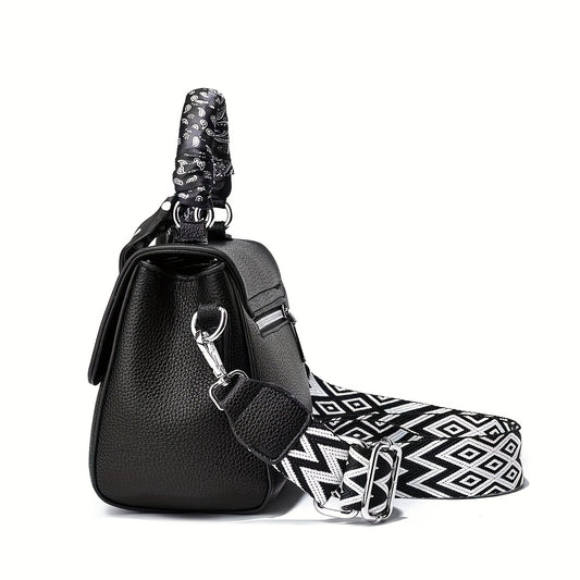 Elegant Women'S Crossbody Bag with Detachable Strap - Chic Geometric Pattern, Black Synthetic, Golden-Tone Hardware, Perfect for Casual or Formal Occasions, Versatile Handbag | Geometric Pattern Bag | Synthetic Bag, Purse Cro