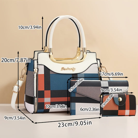 3 հատ գծավոր նորաձև ձեռքի պայուսակների հավաքածու, բազմաֆունկցիոնալ մեծ տարողությամբ խաչաձև պայուսակ՝ ոճային դիզայնով, նորաձև կանացի փոքր քառակուսի ուսի պայուսակներ՝ բազմակողմանի, ամենօրյա, բազմաշերտ, մեծ տարողությամբ, մեկ ուսի կամ խաչաձև պայուսակներով