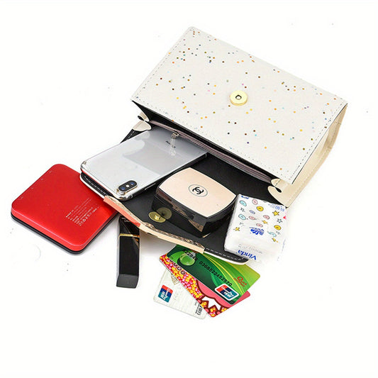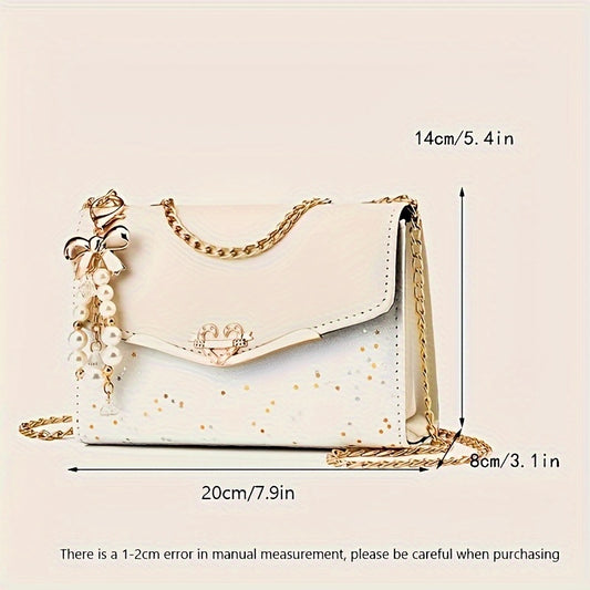 Նորաձև կանացի ծալովի կլաչ մետաղական շղթայով և ճոճվող զարդով, թեթև ուսապարկ, կարգավորվող ուսադիր, քաղաքային պոլկա դոտ դիզայն, պոլիեսթերե երեսպատում, ճարմանդով փակում - իդեալական նվեր ընտանիքի, մոր, սիրելիի, ընկերների, դասընկերների համար
