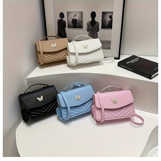Կանացի էլեգանտ, խաչաձև պայուսակ՝ թիթեռի զարդանախշով - Սև, սինթետիկ կաշվից պատրաստված ձեռքի պայուսակ, մագնիսական փակմամբ և կարգավորվող ժապավենով, կոմպակտ, ամենօրյա կանացի ուսի պայուսակ, խաչաձև պայուսակ, նրբագեղ աքսեսուար