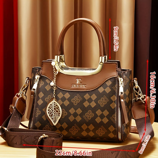 INCK KMCRK Women'S Elegant Large Capacity Tote Bag with Removable Shoulder Strap, Brown & Black Checkered Pattern, Golden-Tone Hardware, Polyester Lining - Ideal for Work, Travel, and Daily Use, Travel Tote Bag | Checkered Pa