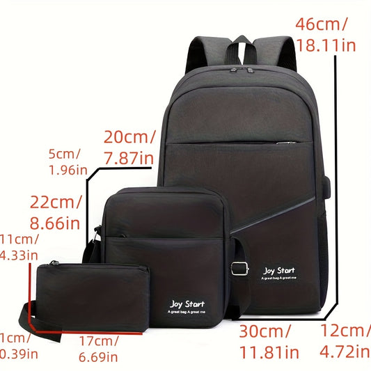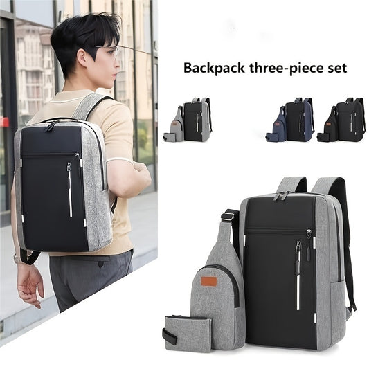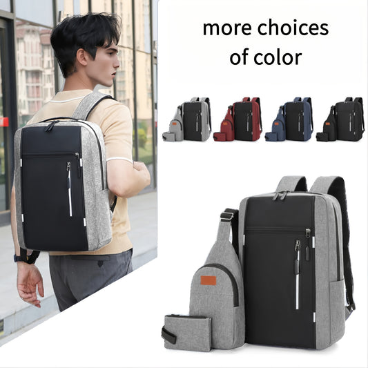 Three-Piece Set: Laptop Bag, Chest Bag, Wallet - Multi-Layer Oxford Fabric Adjustable Shoulder Backpack with Reflective Strip Design, Breathable Wide Strap Large Capacity Casual Storage Bag for Men, Suitable for Daily Commute