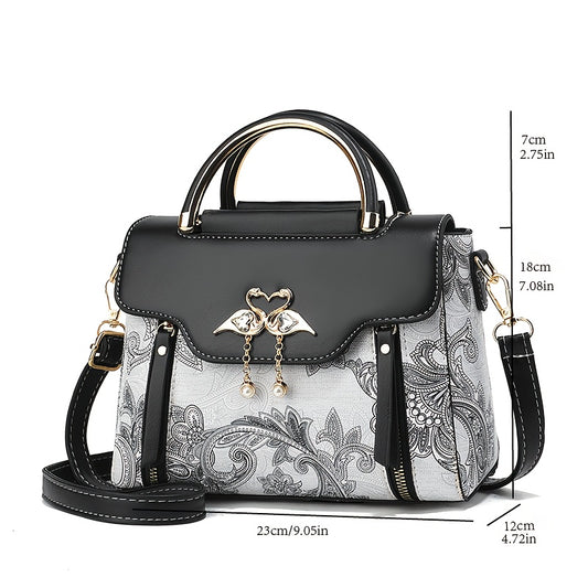 1 հատ ոճային սև կարված, խաչաձև պայուսակ՝ մագնիսական ճարմանդով և կարգավորվող ժապավենով – Էլեգանտ նախշերով դիզայն՝ ամենօրյա օգտագործման, աշխատանքի և զբոսանքների համար, փոքր խաչաձև պայուսակ