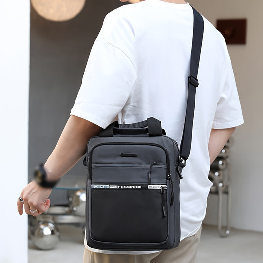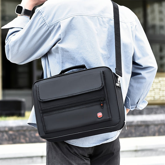 Men's Large Capacity Business Messenger Bag - Black Nylon Fabric, Adjustable Shoulder Strap, Multiple Compartments for Phone, Laptop, Tablet, Keys & Umbrella, Perfect for Work, Travel & Casual Use, Laptop Messenger Bag, Daily