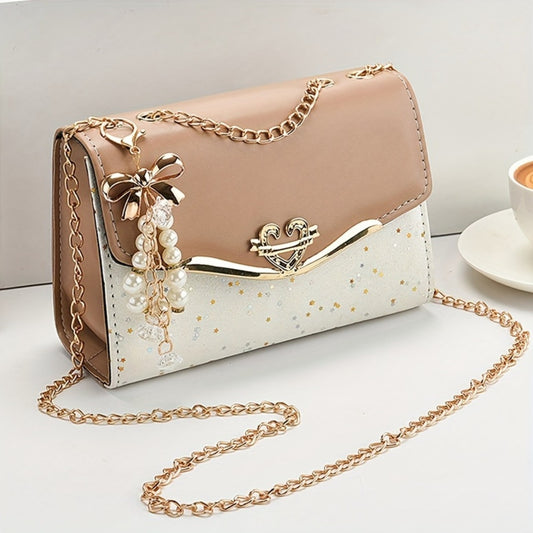 1 հատ նորաձև կանացի ծոպավոր կախազարդ, շղթայով և դեկորատիվ ուսի պայուսակ, շարժական գնումների պայուսակը լավագույն նվերն է ընտանիքի, սիրելիների, ընկերների, դասընկերների և ինքներդ ձեզ համար, քառակուսի հացի 1-4 հատ ուսի պայուսակ