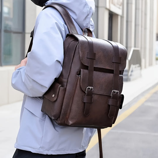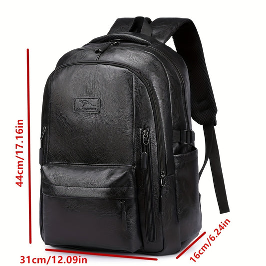 Men'S Lightweight Faux Leather Laptop Backpack - Stylish Black & Brown Design with Adjustable Straps, Tablet Compartment, and Multiple Zippers for School, Office, and Daily Commute, Backpack for School, Office Essentials Carr