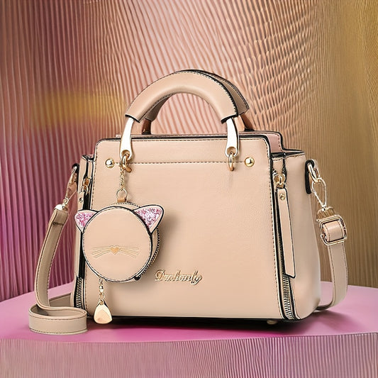 Տեսողականորեն գրավիչ բաց կանաչ ձեռքի պայուսակ՝ կարգավորվող ժապավենով և կատվի կախազարդով – Բազմակողմանի ուսի պայուսակ ճանապարհորդության, գնումների և նվերների համար, ճանապարհորդական պայուսակ | Մինիմալիստական դիզայն | Պոլիեսթերային աստառ, խաչաձև պայուսակ