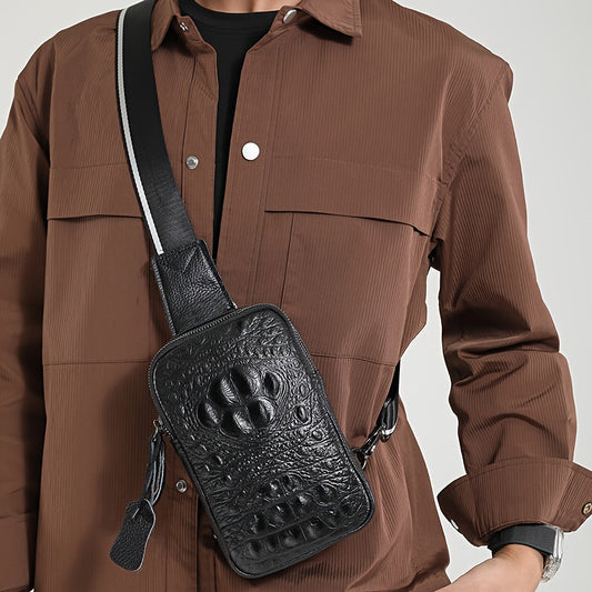 Տղամարդու բնական կաշվե կրծկալով պայուսակ կոկորդիլոսի նախշերով - ոճային սև կրծքավանդակի պայուսակ առօրյա զբոսանքների համար, թաթերի նախշով դիզայն, կարգավորվող ժապավեն, իդեալական է աշխատանքի կամ ճանապարհորդության համար, փոքր կրծկալով պայուսակ