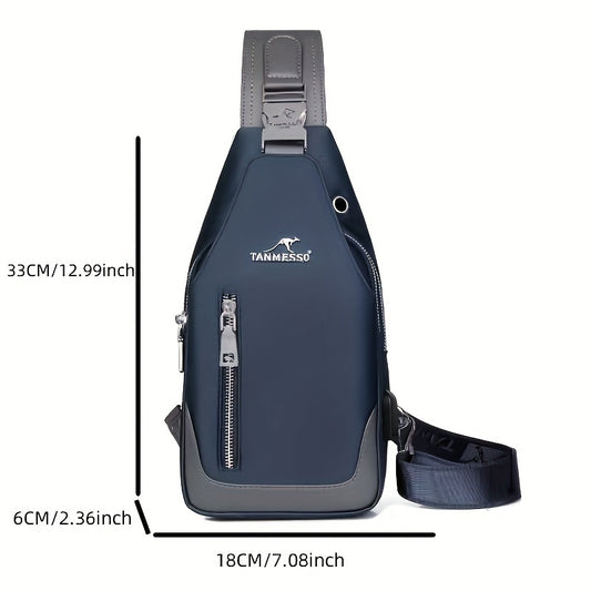 TMOOS Anti-Theft Crossbody Bag for Men - Secure Zipper Closure, Adjustable Strap, Compact Chest Pack - USB Charging Port, Front Zipper Pocket - Anti-Theft Backpack for Travel, Commute, Everyday Use - Navy Blue