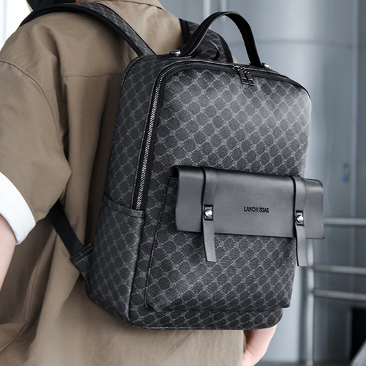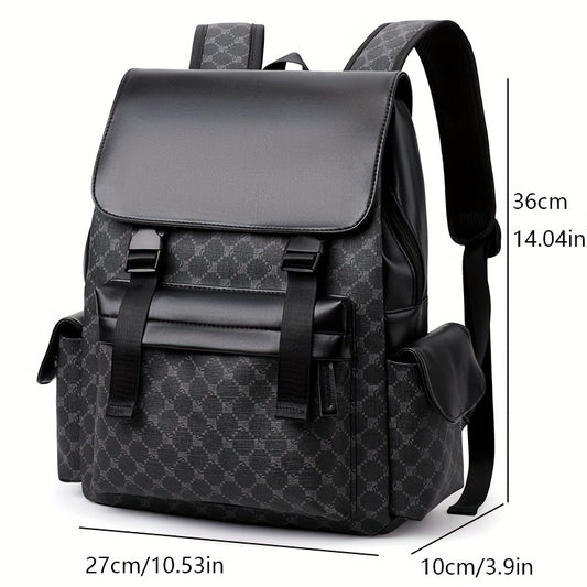 Men'S Stylish Black Brown Gingham Print Backpack - Versatile Commuter Bag with Multiple Pockets, Adjustable Straps, and Golden-Tone Hardware for Work, Travel, and Study, Travel Backpack Gingham Pattern Synthetic Backpac