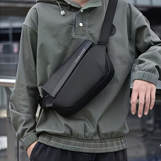 Men'S Sleek Black Crossbody Bag - Durable Oxford Material, Zippered Chest Bag with Adjustable Strap, Ideal for Commuting Cycling, Trendy Shoulder Bag for Men, Cycling Bag Trendy Shoulder Bag Functional Design, Small Crossbo