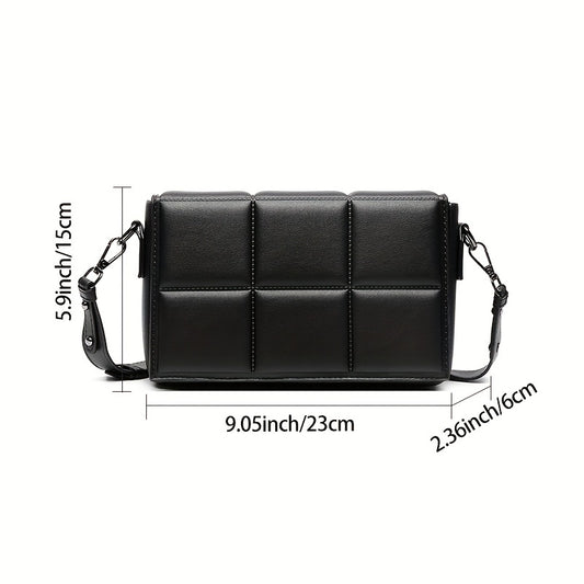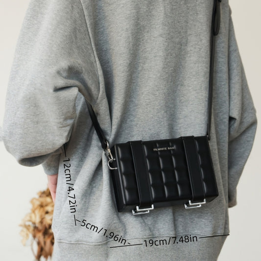LUMG նորաձև արհեստական կաշվից կրծկալով պայուսակ, փոքր քառակուսի ուսի պայուսակ, ամենօրյա կրծքավանդակի պայուսակ, իդեալական է Սուրբ Վալենտինի օրվա նվերի համար, մեծահասակի ծննդյան նվեր, ամենօրյա ճանապարհորդության համար - կարգավորվող ժապավեն - սև