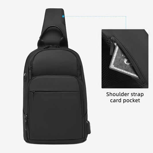 Էլեգանտ սև ուսապարկ կարգավորվող ուսադիրով, հակա-գողական կայծակաճարմանդով և պոլիեսթերե երեսպատմամբ - ոճային կրծքապարկ տղամարդկանց և կանանց համար, անվտանգ ճանապարհորդական պայուսակ, դիմացկուն կայծակաճարմանդով: