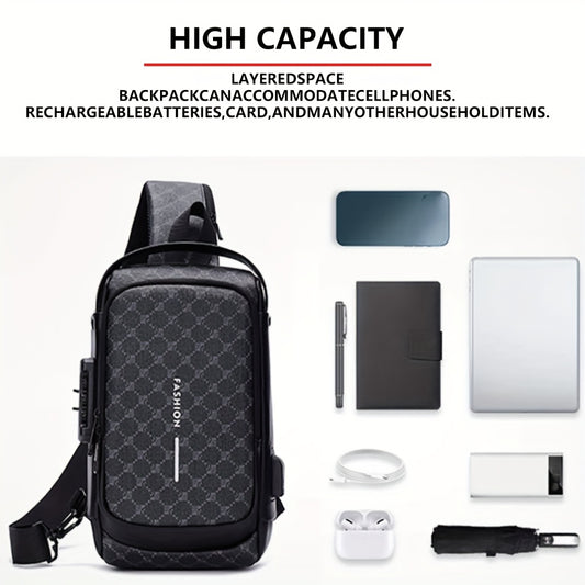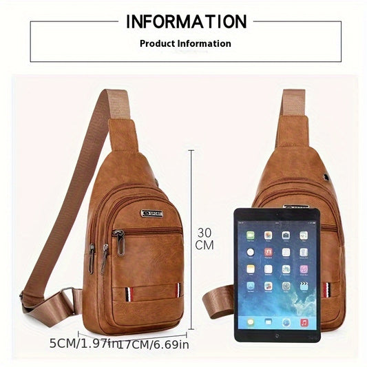 2025 New Men'S Fashion Chest Bag - Soft Faux Leather Anti-Theft Crossbody Bag with Multiple Compartments, Adjustable Strap Zipper Closure for Gym, Travel, Casual Outings (Brown), Secure Travel Pouch, Textured Finish