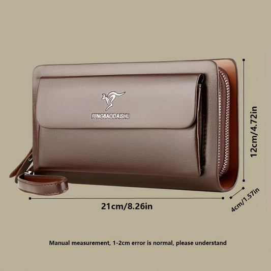Տղամարդու արհեստական կաշվից գործնական կլաչ՝ բազմաթիվ բաժանմունքներով, փոխադրելի ձեռքի պայուսակ՝ ամենօրյա և գործնական օգտագործման համար՝ հեշտ խնամքով