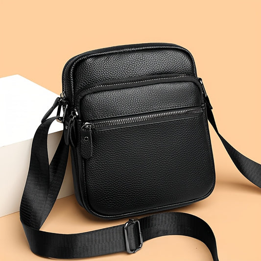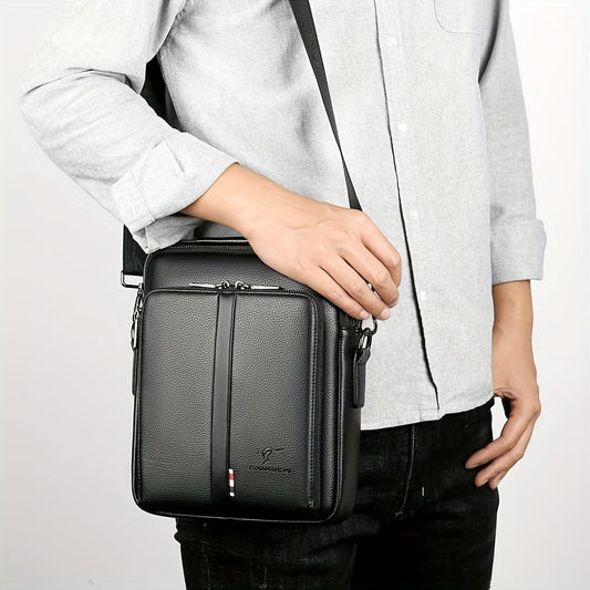 Men'S Stylish Black Crossbody Bag with Adjustable Strap, Multiple Compartments Zipper Closure - Lightweight for Daily Commute, Travel, and Work Trips, Travel Bag, Versatile Shoulder Bag, Textured Finish