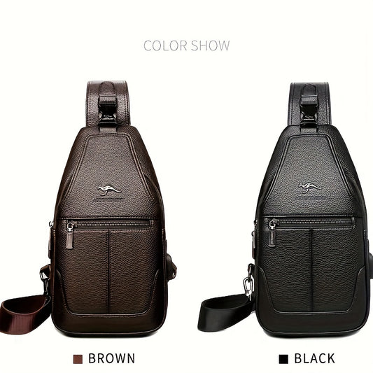 Նոր տղամարդու կրծքավանդակի պայուսակ 2024 իսկական արհեստական կաշվից պատրաստված խաչաձև պայուսակ, ամենօրյա ուսի պայուսակ, տղամարդու մեծ տարողությամբ մեջքի պայուսակ, նորաձև
