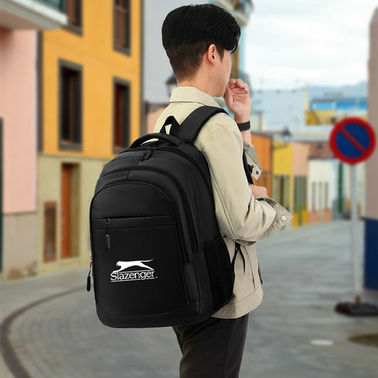 Slazenger R40 Ուսապարկ - Էլեգանտ սև գույն սպիտակ լոգոյով, դիմացկուն գործվածք, բազմաթիվ բաժանմունքներ, փափուկ ուսադիրներ ամենօրյա օգտագործման, ճանապարհորդության, դպրոցի, աշխատանքի համար, ճանապարհորդական, քաղաքային, բազմաֆունկցիոնալ, ամուր ուսապարկ