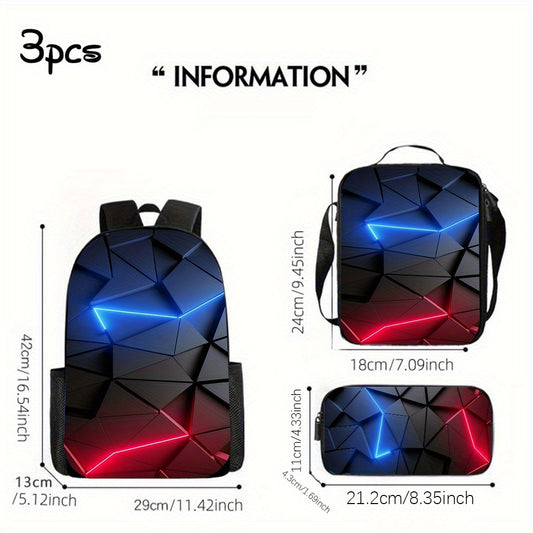 3 հատ Gamer մեծ տարողությամբ թեթև նեյլոնե օրվա պայուսակ՝ ճաշի պայուսակով, գրիչի պատյանով, իդեալական է ճանապարհորդության կամ ամենօրյա երթևեկության համար, հիանալի ծննդյան կամ տոնական նվեր, մեջքի պայուսակ ճանապարհորդության համար