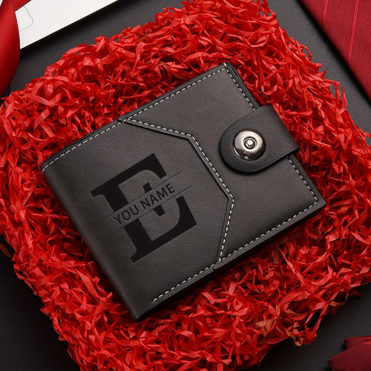 1pc Custom Unisex Wallet, Personalized Initial Name Gender-Neutral Business Wallet with Snap Closure, Multiple Card Slots, Credit Card Holder, Coin Purse, Available in Black, Dark Brown, Light Brown