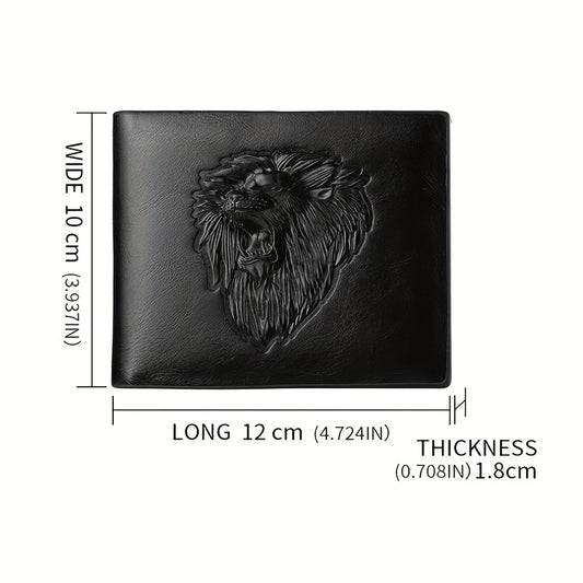 1pc Men's Lion 3D Embossed Pattern Wallet, Business PU Leather Wallet