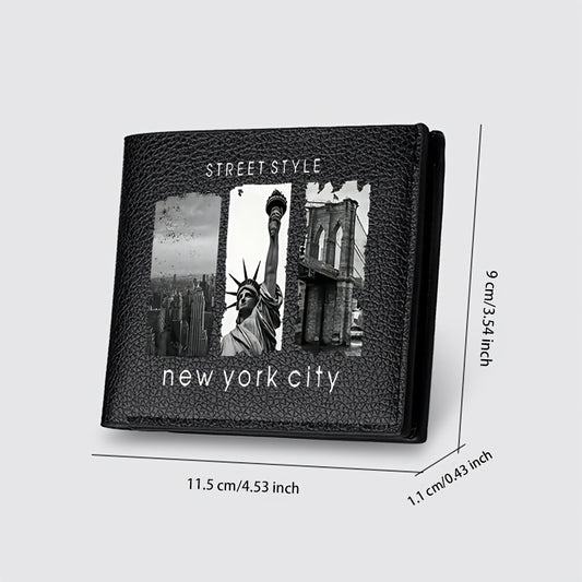 Men's Vintage Faux Leather Credit Card Wallet - Iconic NYC Landmarks - Slim & Soft Design with Multiple Card Slots, Business Style ID & Credit Card Holder, Travel Coin Purse, Perfect for Father's Day gift