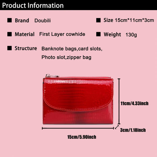 Women'S Luxury Genuine Leather Wallet - European & American Style Compact Trifold with Magnetic Closure, Golden-Tone Hardware, Zipper Pocket - Elegant, Red