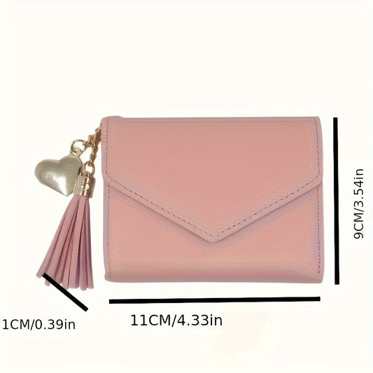 Valentine's Day Gift for Women, Fashionable Foldable Tassel Ladies Wallet, Christmas Gift, Tri-Fold Women's Wallet, Card Holder Coin Purse, Halloween Gift Short Wallet, Birthday and Mother's Day Gift