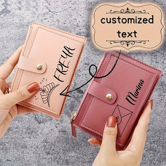 Women'S Personalized Custom Logo Name Wallet - Elegant Minimalist Zipper Closure, Multi-Card Holder & Coin Purse, Lightweight Compact Design with Golden-Tone Hardware, Perfect Gift For Birthdays, Valentine'S Day, Everyday Use