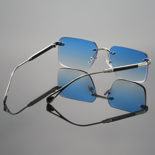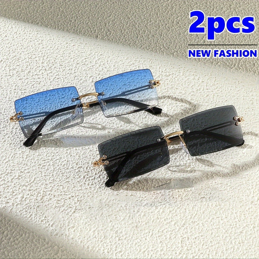 2 հատ նորաձև, անեզր ակնոցներ տղամարդկանց և կանանց համար, գրադիենտային օվկիանոսային ոսպնյակներով, մետաղական շրջանակով, համակարգչային ոսպնյակներով, իդեալական են փողոցային ոճի, առօրյա հավաքույթների և նվերների համար