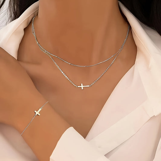 3 հատ/կոմպլեկտ Կանանց համար պարզ խաչ վզնոց, տոնական երեկույթ, նվեր լավագույն ընկերոջը, դասընկերոջը, Սուրբ Ծնունդ, Վալենտինի օր, ամենօրյա համապատասխանություն