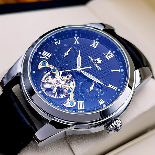 Մեծ գիրոսկոպիկ լիովին ավտոմատ մեխանիկական ժամացույց տղամարդկանց համար՝ լուսնի փուլով, նորաձև, բազմակողմանի ձեռքի ժամացույց
