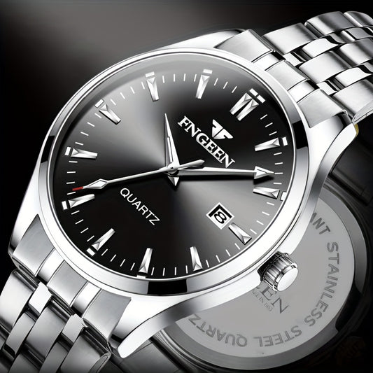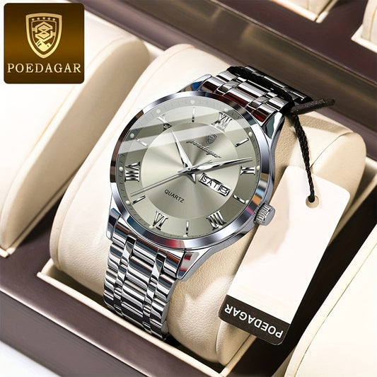Men'S Quartz Business Watch with Rhinestone-Embellished Luminous Dial, Stainless Steel Strap & Case, Date & Day Display, IPX7 Water-Resistant - Ideal for Travel, Work, Outdoor - Perfect Gift for Birthdays, Holidays, Anniversa