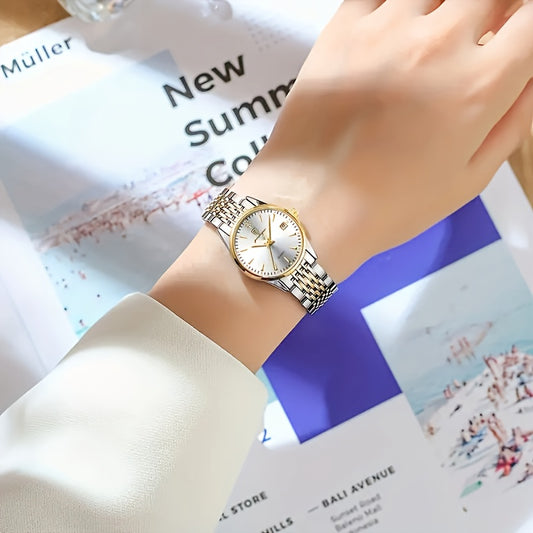 Պարզ և հմայիչ 1 հատ կանացի քվարցային ժամացույցների հավաքածու՝ կլոր ցուցատախտակով, օրացույցի գործառույթով, կանանց նվերների լավագույն ընտրությունը