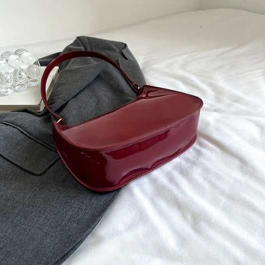 Գերժամանակակից փայլուն ուսի պայուսակ, կանացի արտոնագրված PU կաշվե պայուսակ, պարզ պինդ գույնի թեւատակերի քսակ