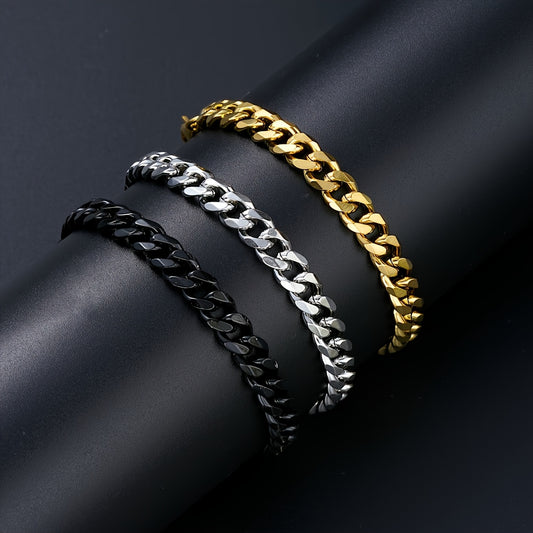 3 հատ մինիմալիստական խոռոչ տիտանե չժանգոտվող պողպատե կուբայական ապարանջանների հավաքածու, ոսկեգույն, արծաթափայլ և սև համադրություն, ունիսեքս, կատարյալ է Սուրբ Ծննդյան, Սուրբ Վալենտինի օրվա, Նոր տարվա համար, իդեալական նվեր ընկերոջ, հոր և որդու համար։