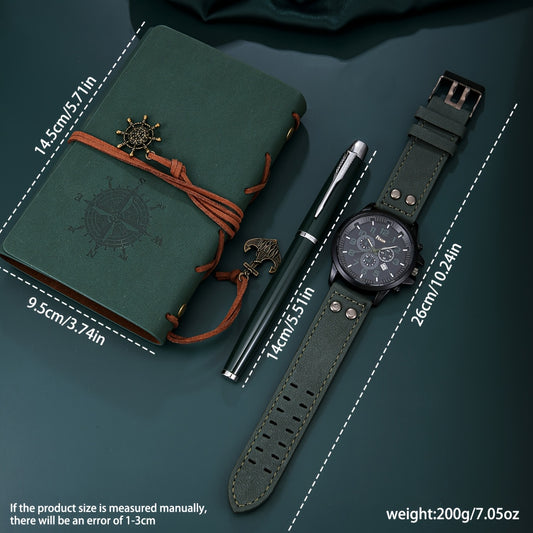 3 հատ վինտաժ ոճի տետրերի հավաքածու + բազմաֆունկցիոնալ գործնական ժամացույց և գրիչ, կատարյալ նվեր նրա համար ծննդյան և տարեդարձերի համար։