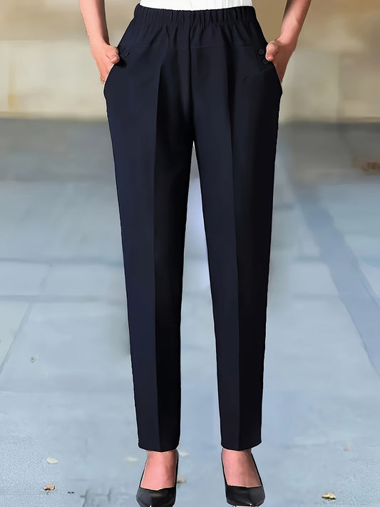 Կանացի ձգվող ուղիղ շալվար սև գույնով - Հարմարավետություն՝ առաձգական գոտկատեղով, պոլիեսթեր և էլաստանի խառնուրդով, լվացվող մեքենայով - բազմակողմանի հագուստ բոլոր սեզոններում, ամենօրյա հագուստի տաբատ|Պարզ էսթետիկական|դիմացկուն գործվածք