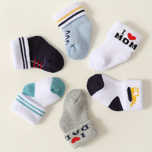 6 հատ Հարմարավետ բամբակյա խառնուրդ Երիտասարդների և երիտասարդների տղաների գուլպաներ - տաք, հաստ, միջին սրունքի, չսահող հատակով, փափուկ շերտավոր մանժետներ - կատարյալ աշուն/ձմեռ - մուգ կապույտ, բաց կապույտ, սպիտակ, մոխրագույն, երիտասարդական գուլպաներ