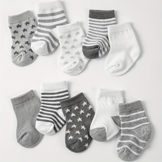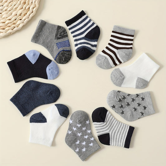 10 հատ տղաների միջին հորթի գուլպաներ - աստղային, գծավոր և գունավոր բլոկի նախշեր, փափուկ տրիկոտաժե գործվածք, բոլոր սեզոնային հարմարավետություն երիտասարդների և երիտասարդների համար, երիտասարդների գուլպաներ