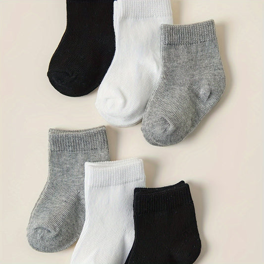6 հատ Soft Cotton Blend Youngsters Socks - շնչող, չսահող, բոլոր սեզոնային գուլպա երիտասարդների և երիտասարդների համար, սև/սպիտակ/մոխրագույն, փաթեթավորող, բամբակյա խառնուրդ