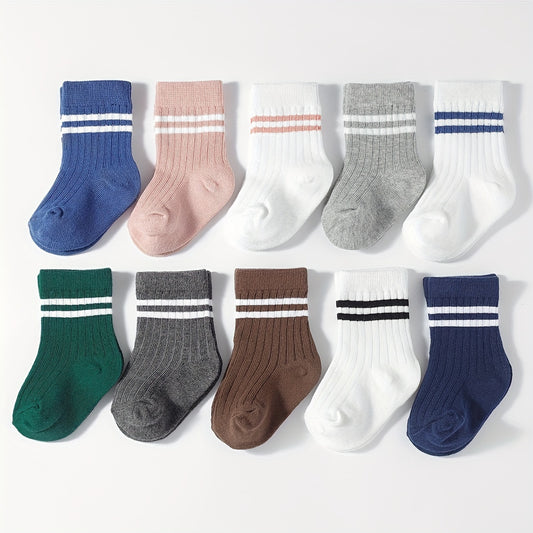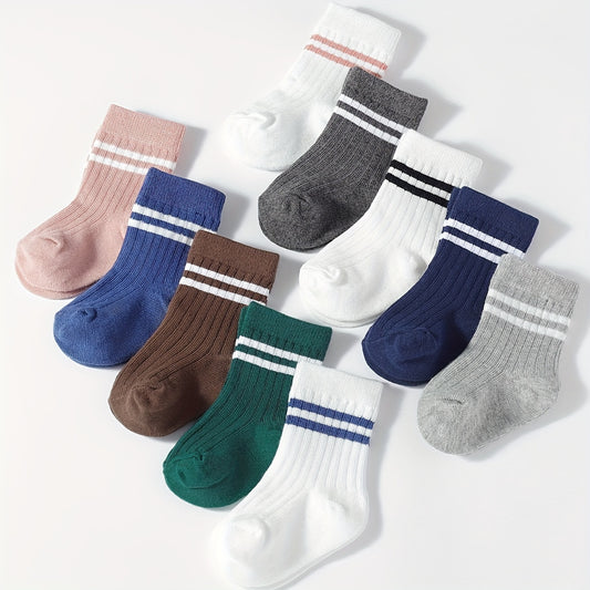 Մանկական տղայի 10 զույգ գծավոր տրիկոտաժե գուլպաներ, շնչառական քրտինքը կլանող Հարմարավետ փափուկ պատահական, պարզ ոճի գուլպաներ, որոնք կրում են բոլոր եղանակներին մանկական դրսի համար