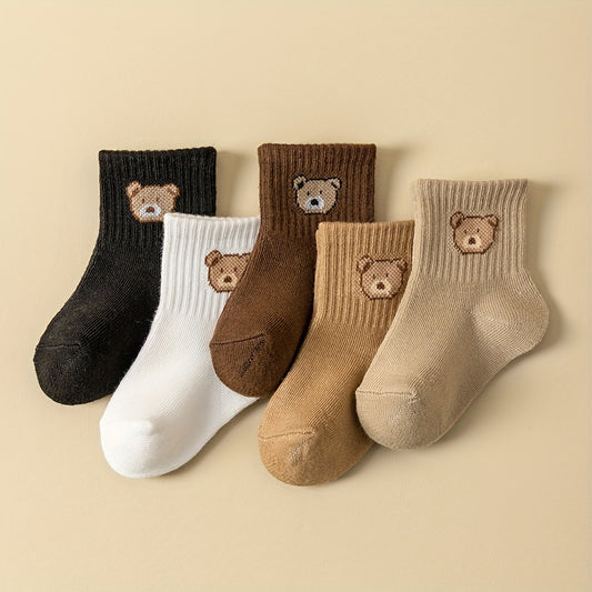 5 զույգ գեղեցիկ մուլտֆիլմ արջի կոճ գուլպաներ տղաների և աղջիկների համար՝ փափուկ, ձգվող պոլիեսթեր խառնուրդ, կատարյալ բոլոր եղանակների համար