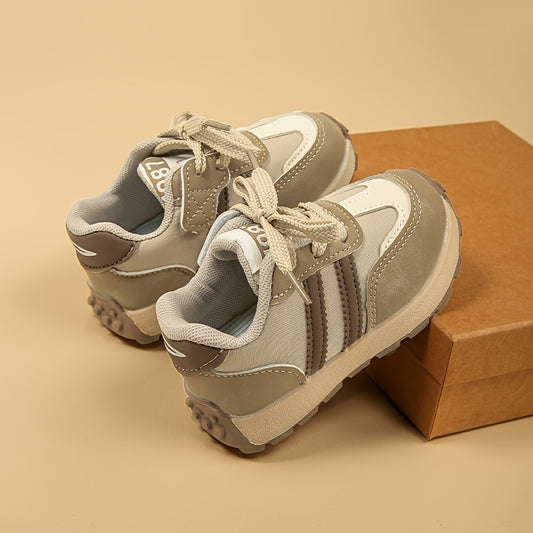 [1pc Unisex Toddler Sports Sneakers] Toddler Sports Sneakers, Unisex Preppy Casual Running Shoes, Striped Low Top Fabric & PU Upper, Breathable Mesh, Soft TPR Sole, with Adjustable Strap Closure, for Spring/Summer, All-Season