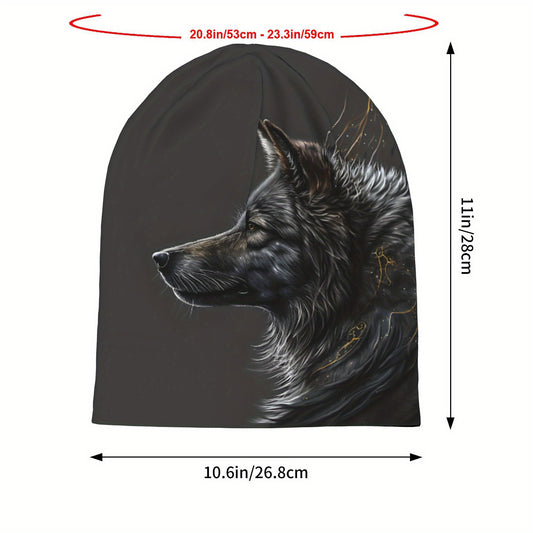Գիշերային լուսին Գայլի ռեալիստական գայլի գլխի դիզայնով գանգի գլխարկ - սև ունիսեքս հիփ հոփ նորաձև ձմեռային գլխարկ տղամարդկանց և կանանց համար, ցուրտ եղանակի աքսեսուար, ոճային գլխարկ, բարձրորակ տպագրություն