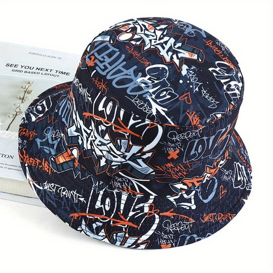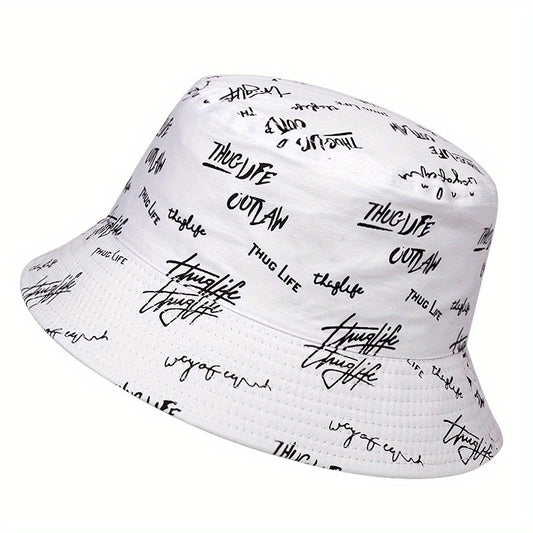 Տղամարդու երկկողմանի գլխարկ՝ տառերի նախշերով - Ֆանկի ոճ, արևապաշտպան և բազմակողմանի՝ բացօթյա գործունեության համար, ծալովի արևապաշտպան գլխարկ