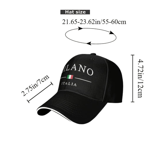Կարգավորվող Միլան, Իտալիա տպագրությամբ բեյսբոլի գլխարկ - շնչող պոլիեսթերային հայրիկի գլխարկ՝ իտալական դրոշի նախշերով, սև և սպիտակ, իդեալական է բացօթյա գործունեության, առօրյա հագուստի և նվերների համար
