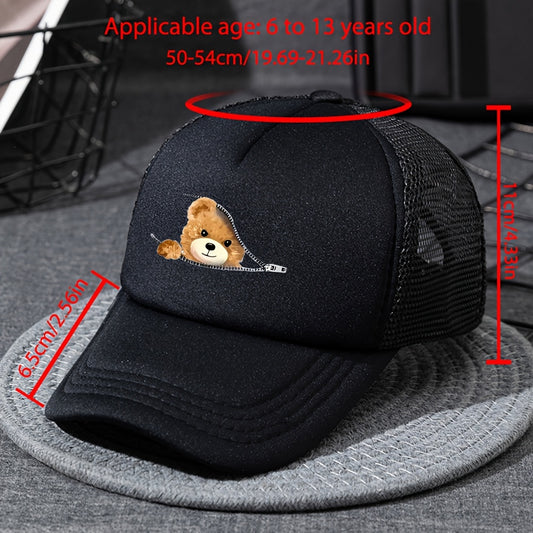 Մանկական շնչող ցանցե բեյսբոլի գլխարկ՝ արջուկի նախշերով - կարգավորվող Snapback, արևապաշտպան բեռնատար գլխարկ տղաների և աղջիկների համար, սև