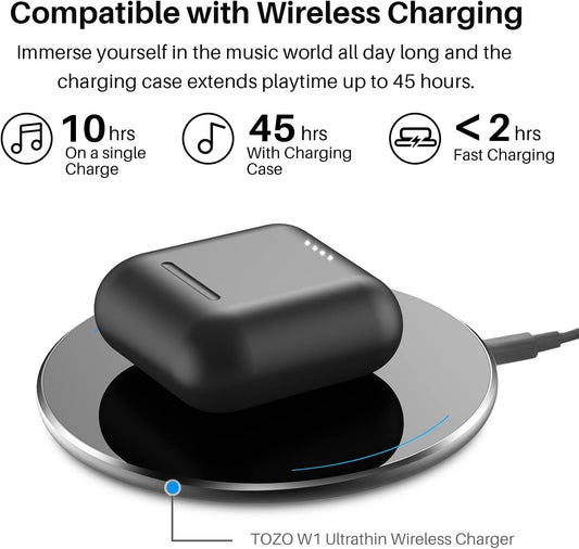 TOZO T6 True Wireless Earbuds Bluetooth 5.3 Ականջակալներ 45H երկար ժամանակ, անլար լիցքավորման պատյան, IPX8 անջրանցիկ ստերեո ականջակալներ, ներկառուցված խոսափող զանգեր, ականջակալ Premium Deep Bass 32 Preset Eqs APP-ի միջոցով